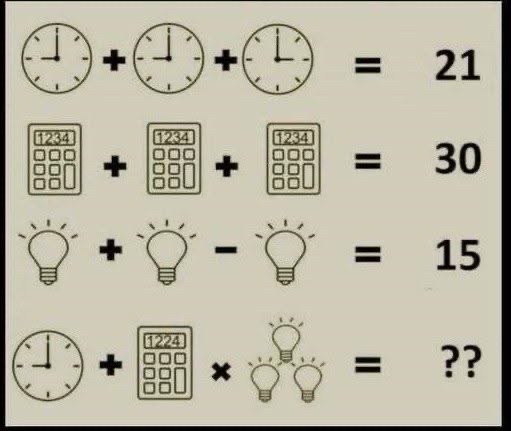 Bulb + Bulb – Bulb = 15 This simplifies to one bulb (with 5 rays) = 15