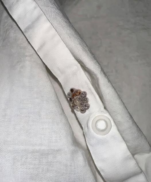 The small objects looked like insect eggs — perfectly round, pale, and arranged in a neat cluster. The sight was unsettling, especially considering they were on the very bed where I had just been sleeping.